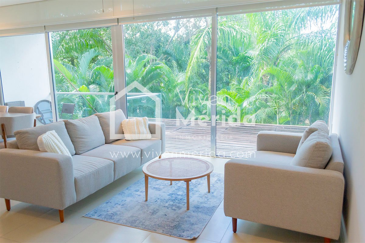 Departamento en renta en el Yucatán Country Club en nivel uno, en un hermoso condominio llamado Anthea con una bonita y amplia casa club con áreas recreativas, gimnasio, área infantil, alberca con jacuzzi, terraza, salón de usos múltiples, cancha de padel, elevadores, y andadores rodeados de hermosa vegetación. El Yucatán Country Club es un desarrollo de primer nivel, la mejor comunidad para vivir en Latinoamérica con uno de los mejores campos de golf del país llamado “El Jaguar”.